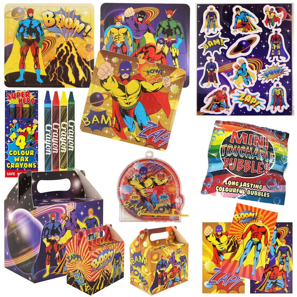 Deze ✅ KANT-EN KLARE ✅ Superhelden Uitdeelbox, / Traktatiebox met daarin 6 Speelgoed artikelen!.
