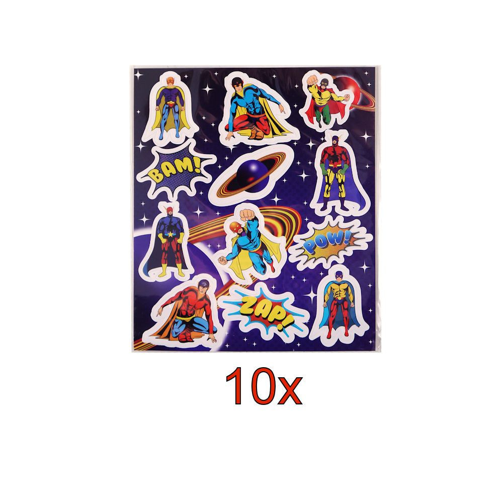 ▶ 10x Super Hero Stickervellen, met elk 12 Stickers.