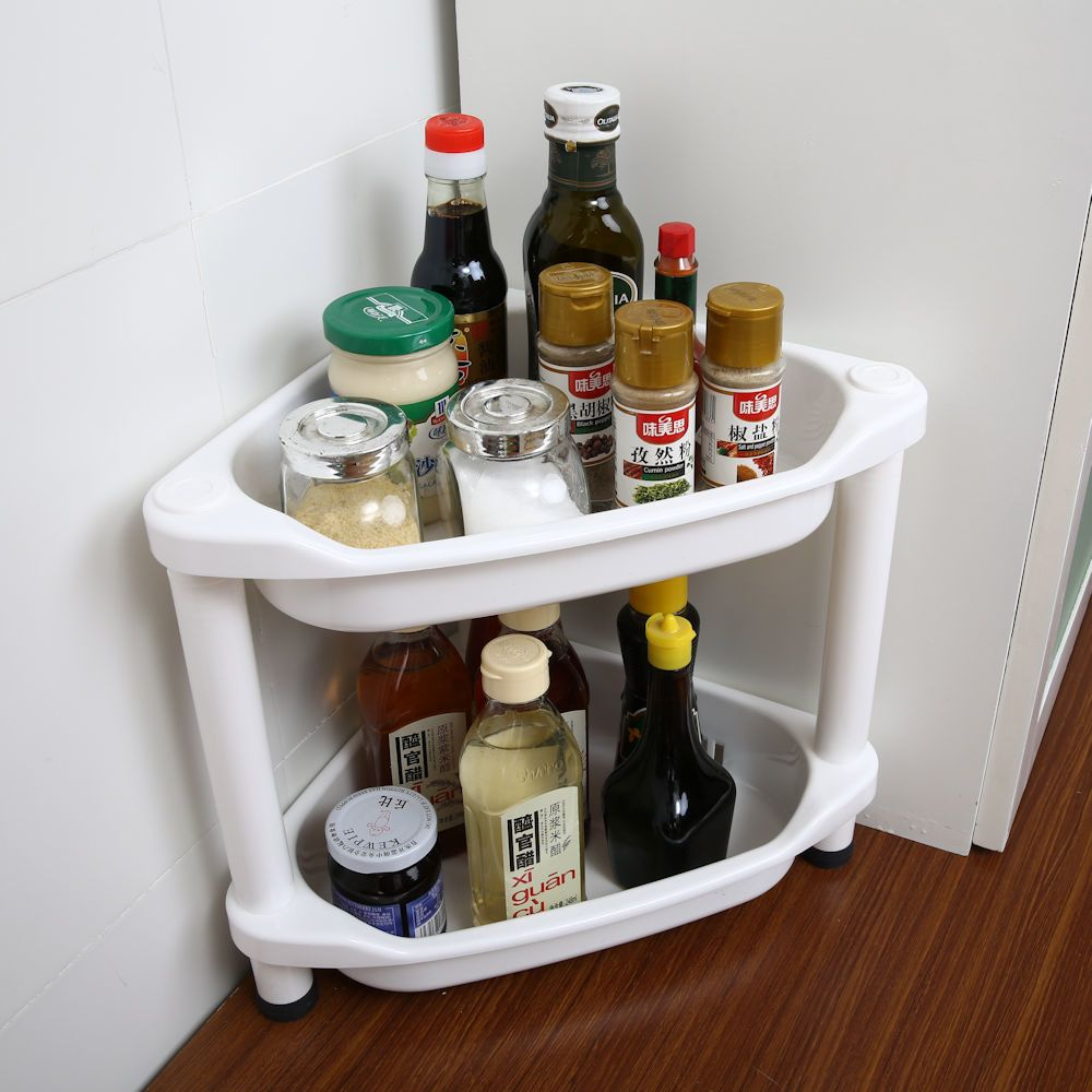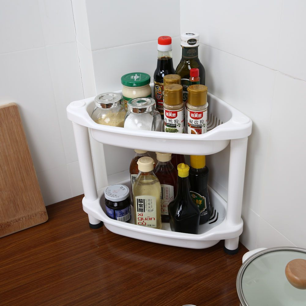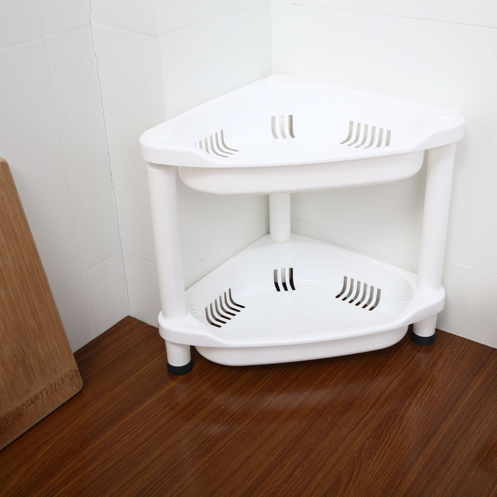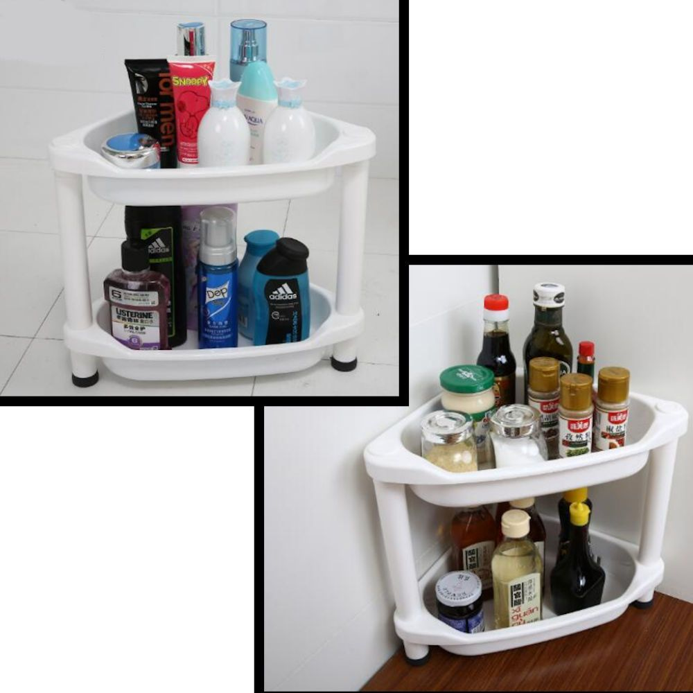 Dit handige opbergrek voor plaatsing in de hoek is voorzien van 2 lagen is gemaakt kunstof. En is speciaal gemaakt voor gebruik in de badkamer of uw keuken.
