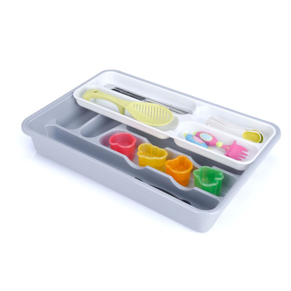 Decopatent Besteklade - 10 Vakken - Bestekbak - Kunstof - Bestekbakken - Keukenla bestek organizer - 29 x 43 x 7 Cm - Wit/Grijs