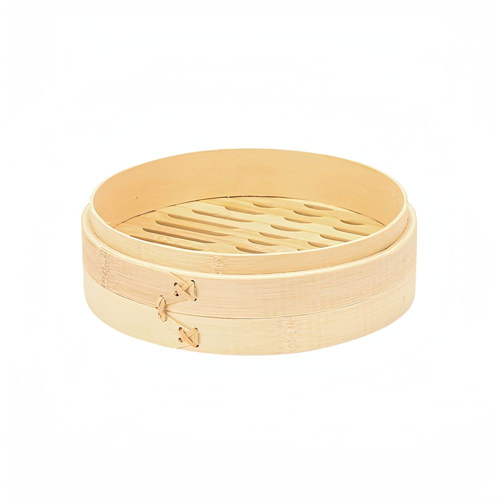 - Rond Bamboe stoommandje, voorzien van 2 stoommandjes + deksel.