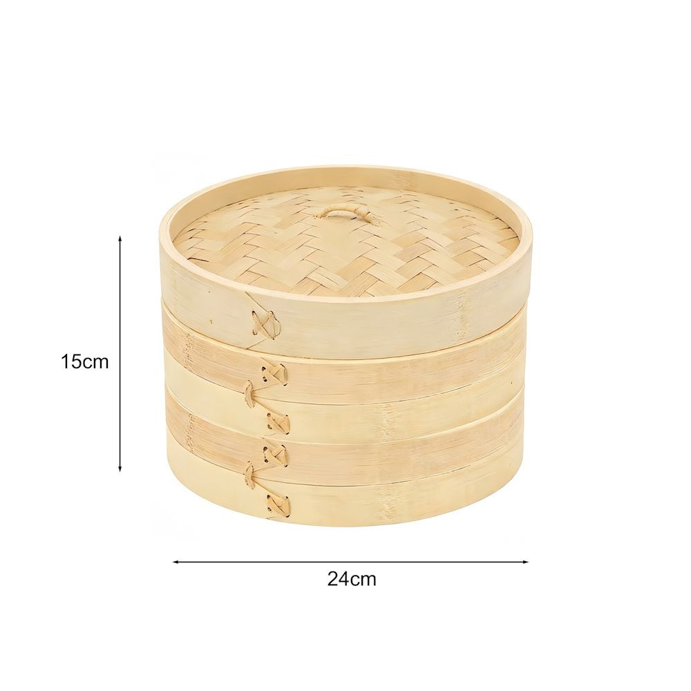 Decopatent - 3 Delig Stoommandje met deksel - Ø24 Cm - Bamboe Hout - Rijst Stoommanden - Stomer - Steamer Cooker - Dim Sum Stoomschaal