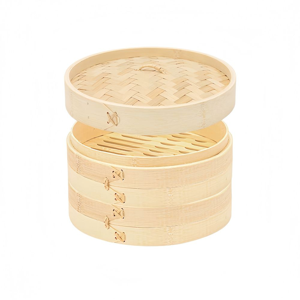 3-Delige Stoommand van Bamboe Diameter Ø 24 Cm. Met deze klassieke bamboe stoommand bereid je op een traditionele manier rijst voor Aziatische gerechten.