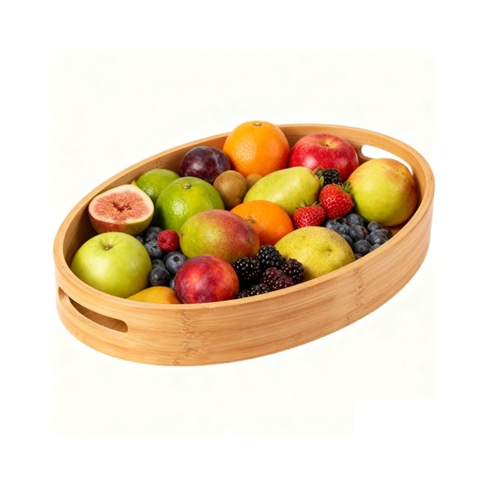 Decopatent - Dienblad Bamboe Hout Ovaal - Koffie / Thee dienblad met handvaten - Fruitschaal - Keuken serveer tray dienblad met opstaande rand - Afm. 36 x 25.5 x 5 Cm.