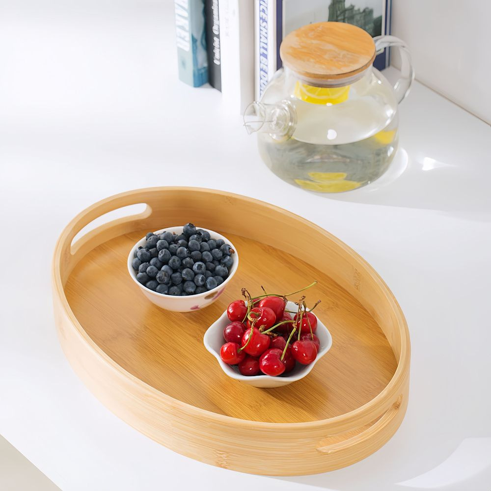 Decopatent - Dienblad Bamboe Hout Ovaal - Koffie / Thee dienblad met handvaten - Fruitschaal - Keuken serveer tray dienblad met opstaande rand - Afm. 29 x 20.5 x 5 Cm.