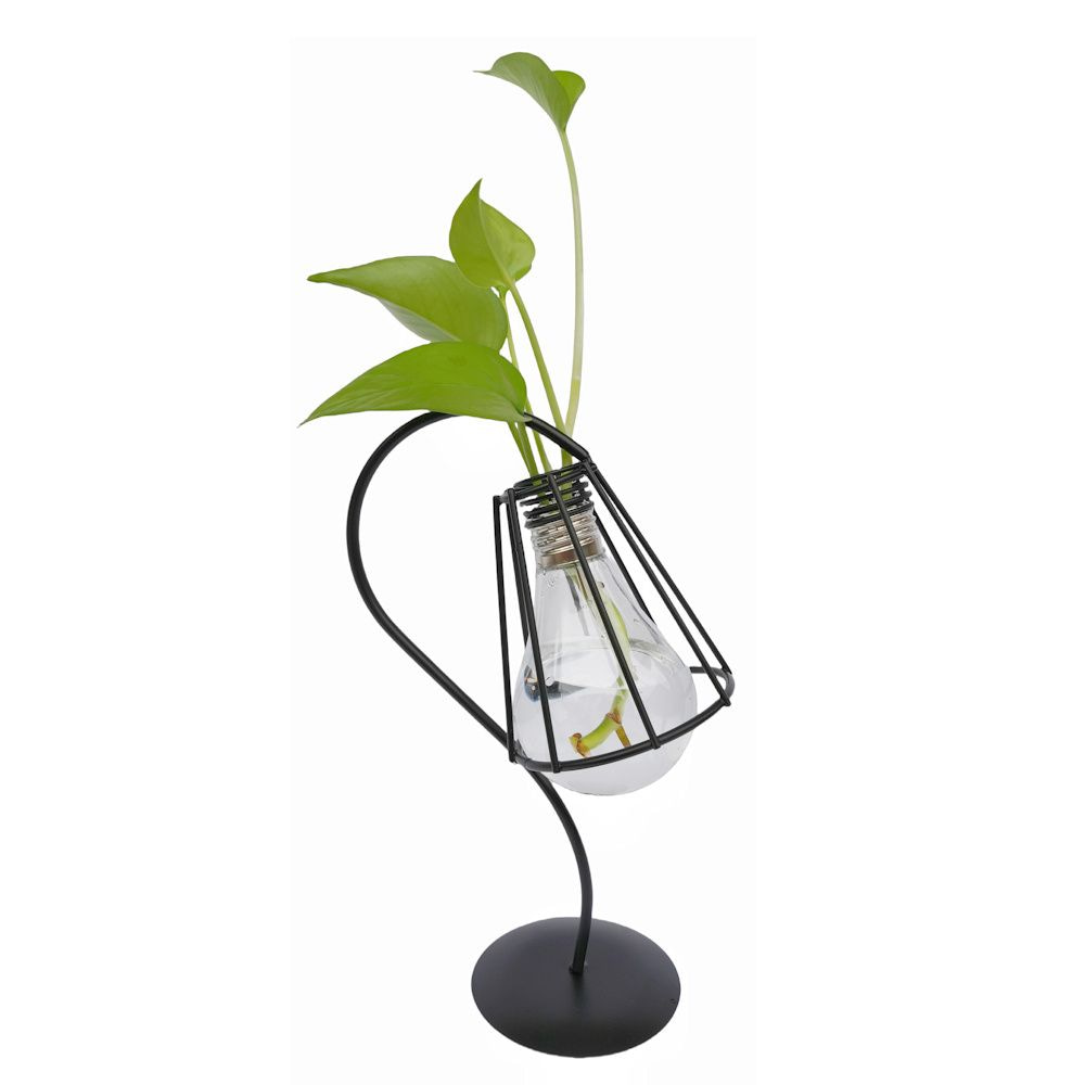 Decopatent - Metalen Staande Decoratie Bloemenlamp - glazen lamp vaas - vaasje glas - Om bloemetjes, stekjes, droogbloemen of luchtplantjes in te zetten