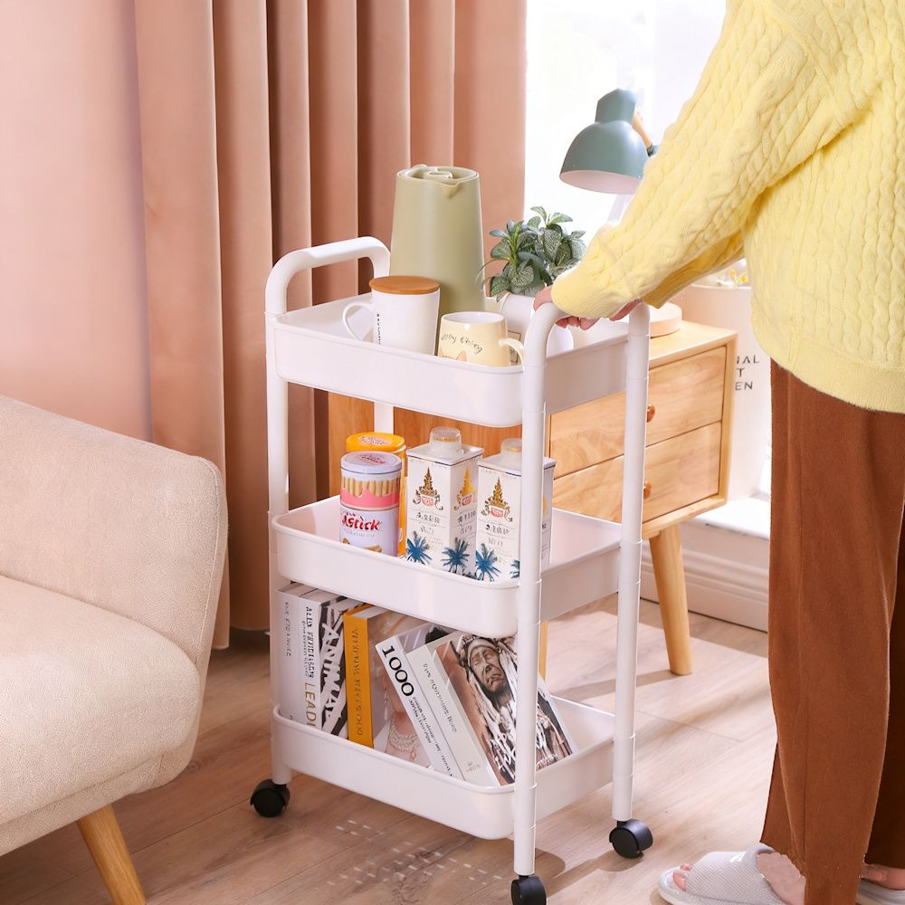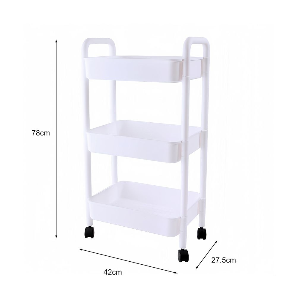 Te gebruiken als keukentrolly in uw keuken, om bijvoorbeeld uw extra voorraad, specerijen etc in op te bergen. Ook zeer geschikt als badkamerrek om uw shampoo, handdoeken, toilet spullen etc in op te bergen. Het rekje is erg praktisch doordat er 3 niveaus voor opslag mogelijk zijn.