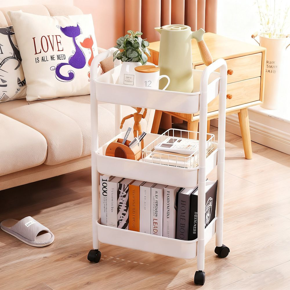Smal Opbergrek 3 laags op Wieltjes met 3 Open Vakken, Ruimtebesparende Opberg Rek Organizer voor Keuken of in uw Badkamer. Praktisch opbergrekje, hij is smal en past perfect in die smalle ruimte.