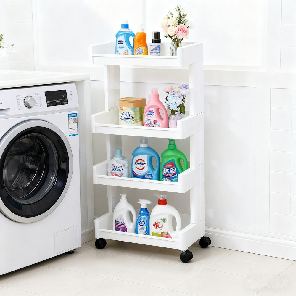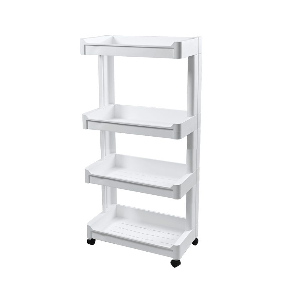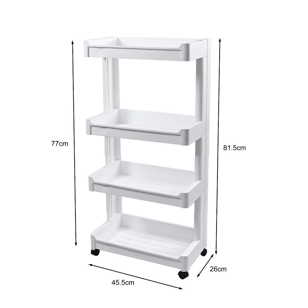 Dit mooie smalle opbergrek met 4 legplanken gemaakt van hoogwaardig kunststof is zeer geschikt, om de kleinste hoekjes te vullen en om snel extra opslagruimte te creëren. Dit nisrek kan bijvoorbeeld in de keuken, badkamer, woonkamer, eetkamer, berging gebruikt worden.