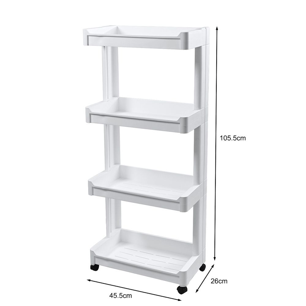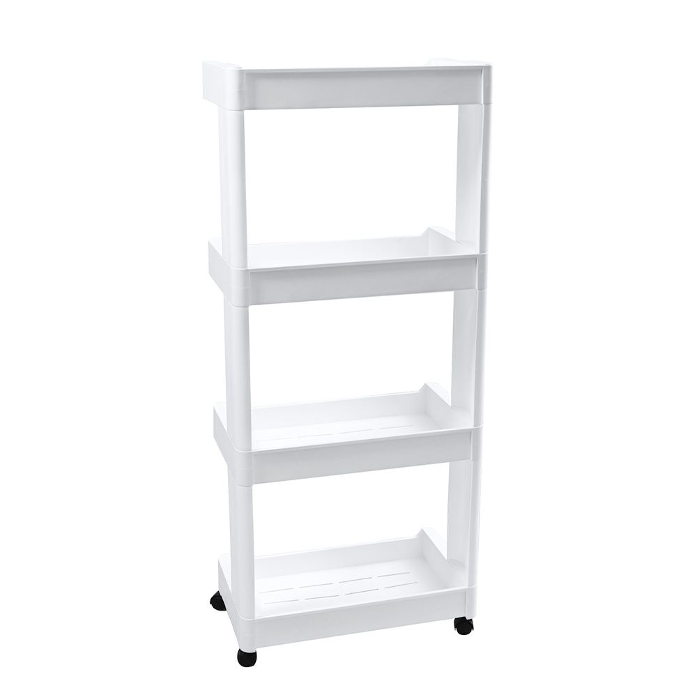 Dit mooie smalle opbergrek met 4 legplanken gemaakt van hoogwaardig kunststof is zeer geschikt, om de kleinste hoekjes te vullen en om snel extra opslagruimte te creëren. Dit nisrek kan bijvoorbeeld in de keuken, badkamer, woonkamer, eetkamer, berging gebruikt worden.