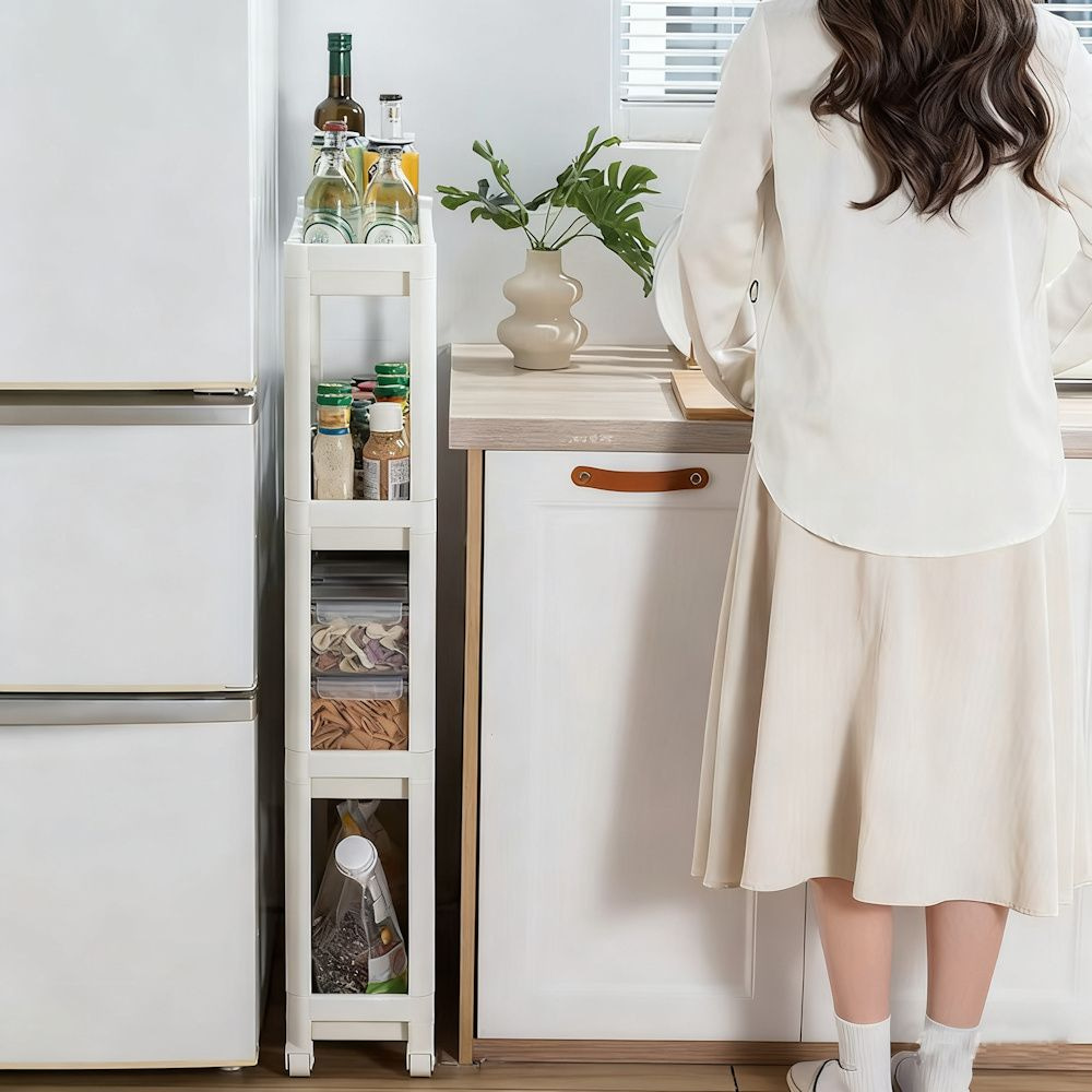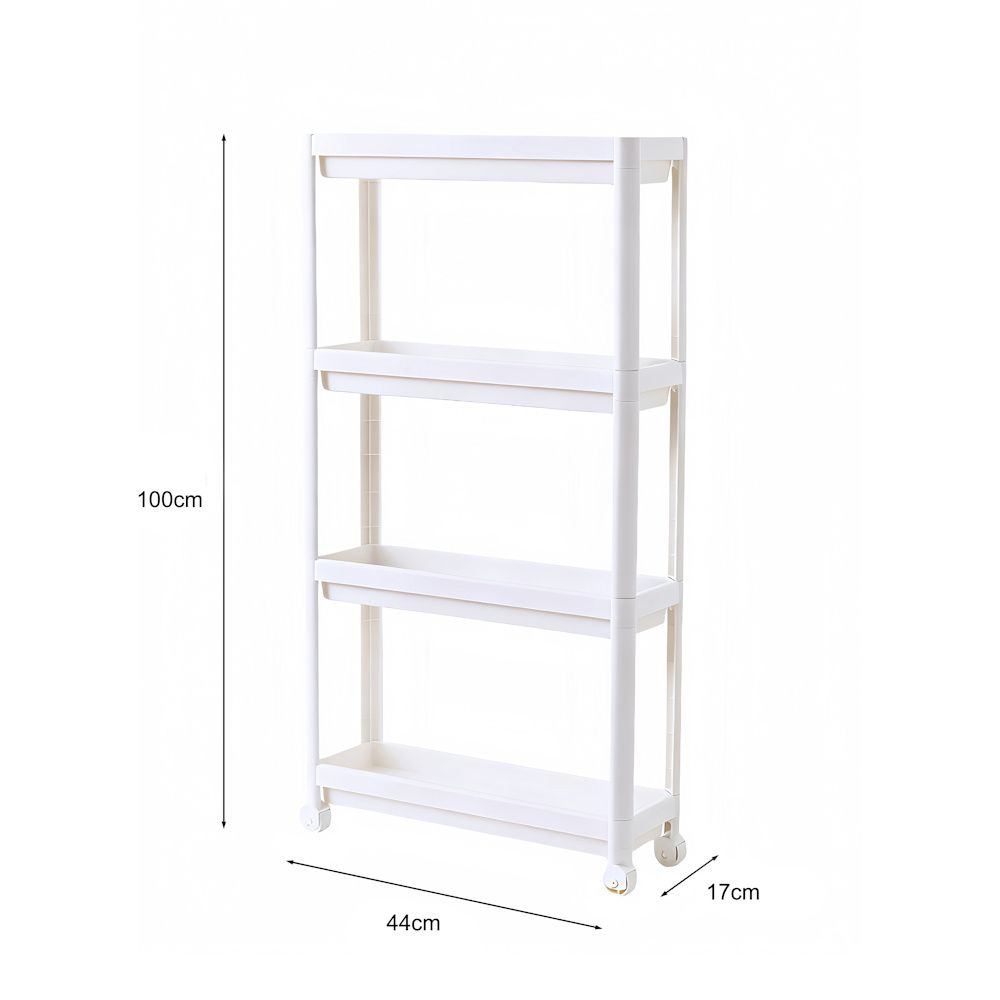 Dit mooie smalle opbergrek met 4 legplanken gemaakt van hoogwaardig kunststof is zeer geschikt, om de kleinste hoekjes te vullen en om snel extra opslagruimte te creëren. Dit nisrek kan bijvoorbeeld in de keuken, badkamer, woonkamer, eetkamer, berging gebruikt worden.