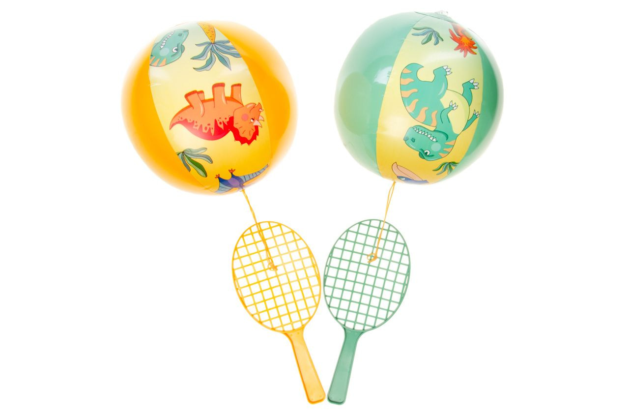 Duckiez Tapbal Dinosaurus Afmetingen: 24 x 11 cm. racket diameter 24cm Geleverd per 12 stuks