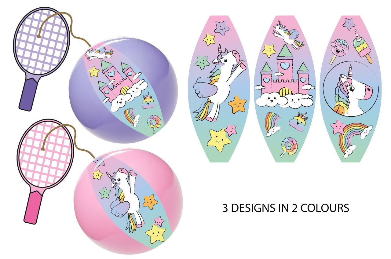 Duckiez Tapbal Eenhoorn Afmetingen: 24 x 11 cm. racket diameter 24 cm deflated Geleverd per 12 stuks