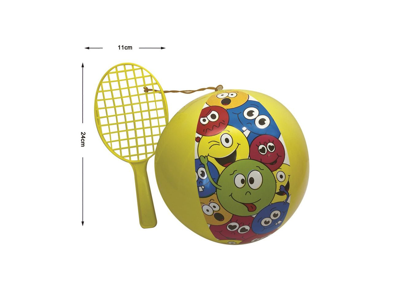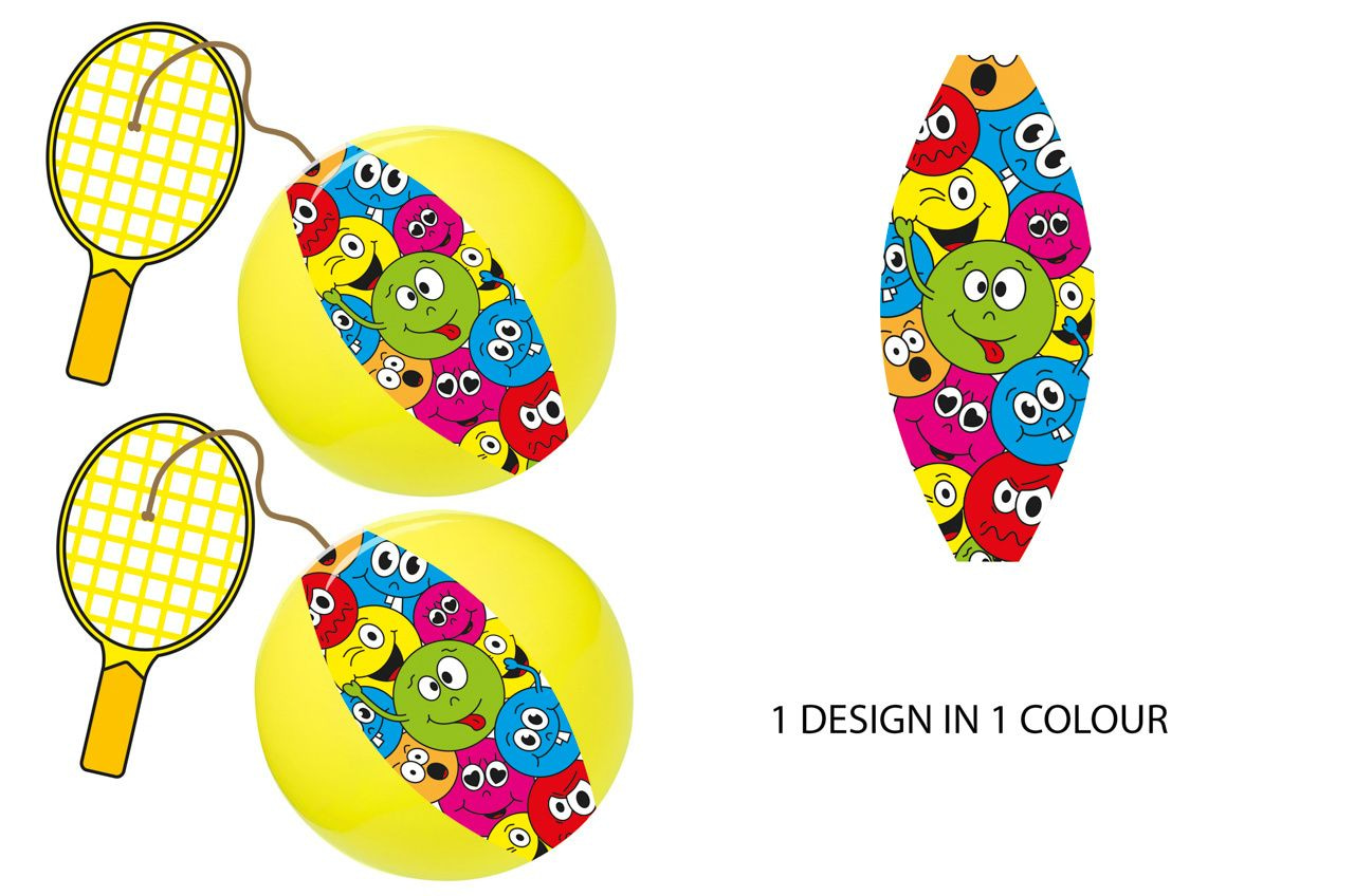Duckiez Tapbal Lachgezicht Afmetingen: 24 x 11 cm. racket diameter 24 cm deflated Geleverd per 12 stuks