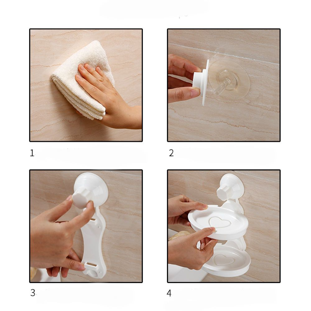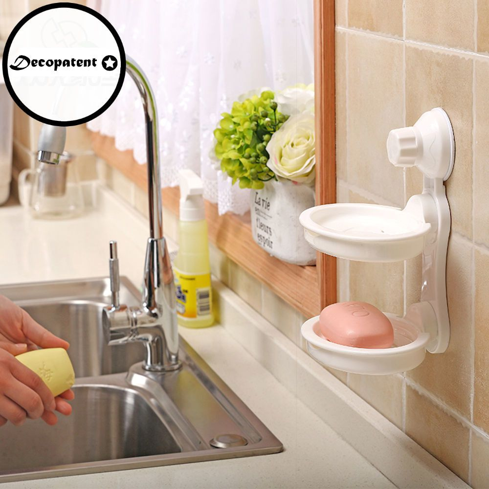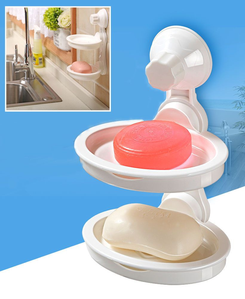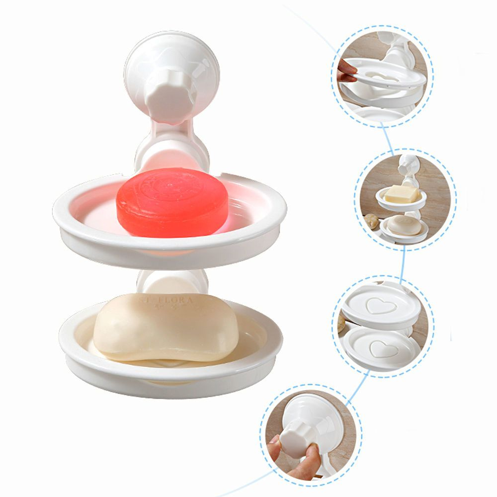 ✅ Dubbele Zeephouder met bevestiging via zuignap aan de muur.