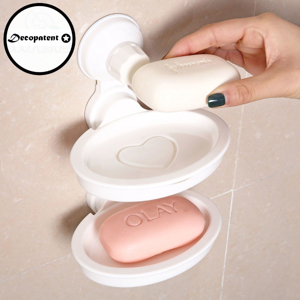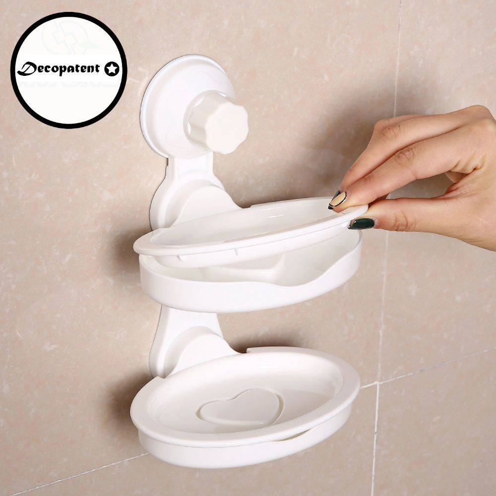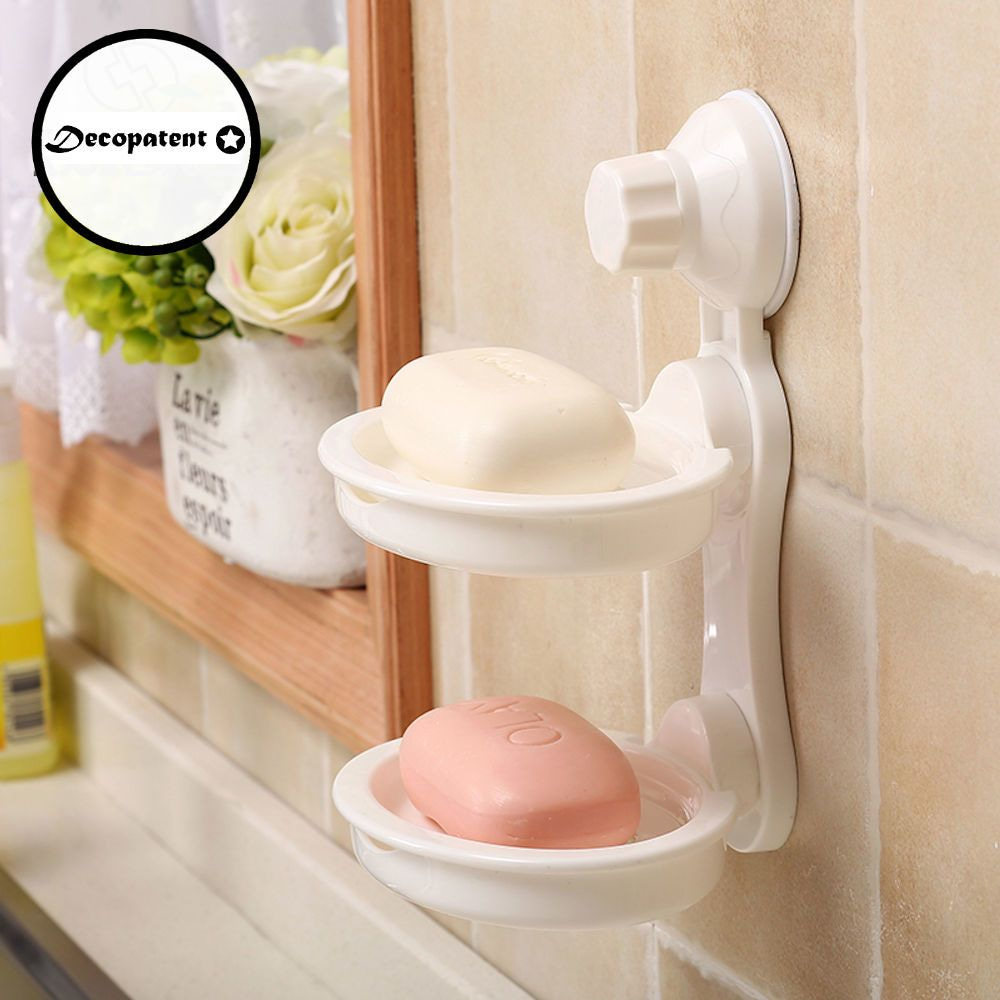 Decopatent Zelfklevende Hangende Dubbele zeephouder voor 2 stuks zeep - Voor Douche / Badkamer / Keuken / Toilet - Zeepbakje met zuignap - Zeepschaal hangend - Zeephouder Douche - Zeep houder Muur / Wand Montage zonder boren - Decopatent®